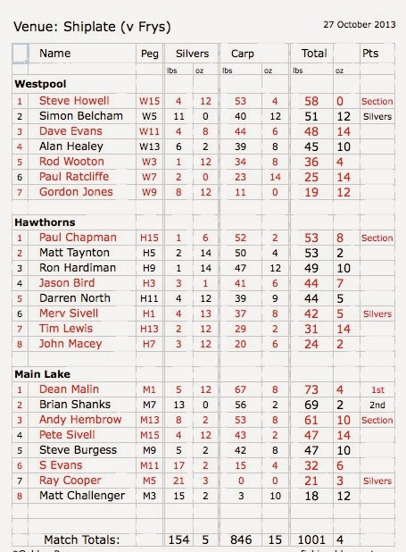 Winner on the day, by a country mile, was Rich Britton on peg 6 with 70-15.
